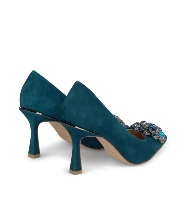 Zapato De Tacón Realizado En Piel Con Adorno De Flores. La Altura Del Tacón Es De 8,8 Cm.