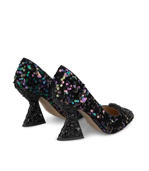 Zapatos Con Tacón En Forma De Embudo. Broche Con Pedrería. Cubierto Con Diamantes De Imitación. La Altura Del Tacón Es De 10 Cm.