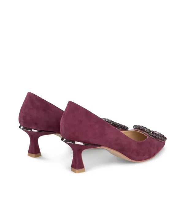 Zapato De Tacón Realizado En Piel Con Pedrería Cuadrada. La Altura Del Tacón Es De 6 Cm.