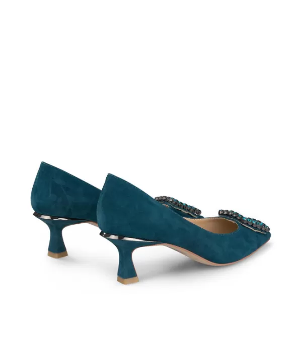 Zapato De Tacón Realizado En Piel Con Pedrería Cuadrada. La Altura Del Tacón Es De 6 Cm.