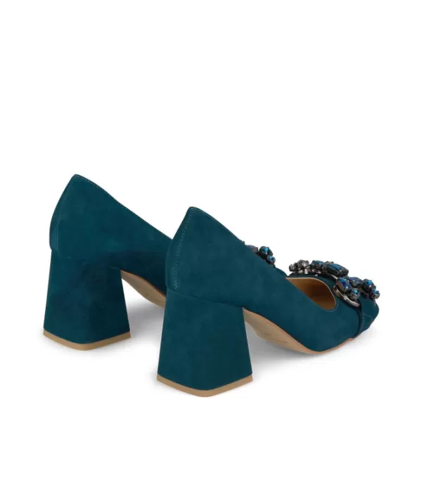 Zapato De Tacón Realizado En Piel Con Adorno De Estribo Cubierto De Pedrería. La Altura Del Tacón Es De 7,5 Cm.