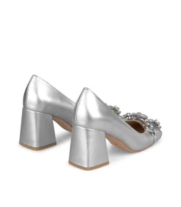 Zapato De Tacón Realizado En Piel Con Adorno De Estribo Cubierto De Pedrería. La Altura Del Tacón Es De 7,5 Cm.
