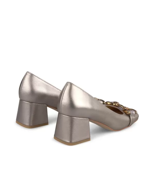 Zapatos De Tacón Realizados En Piel Con Adorno De Estribo. Tacón De Bloque Y Puntera Cuadrada. La Altura Del Tacón Es…