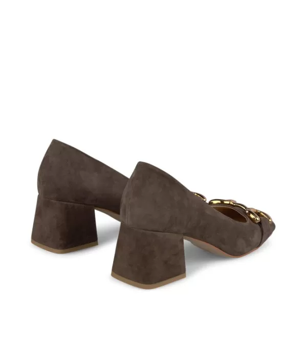 Zapatos De Tacón Realizados En Piel Con Adorno De Estribo. Tacón De Bloque Y Puntera Cuadrada. La Altura Del Tacón Es…