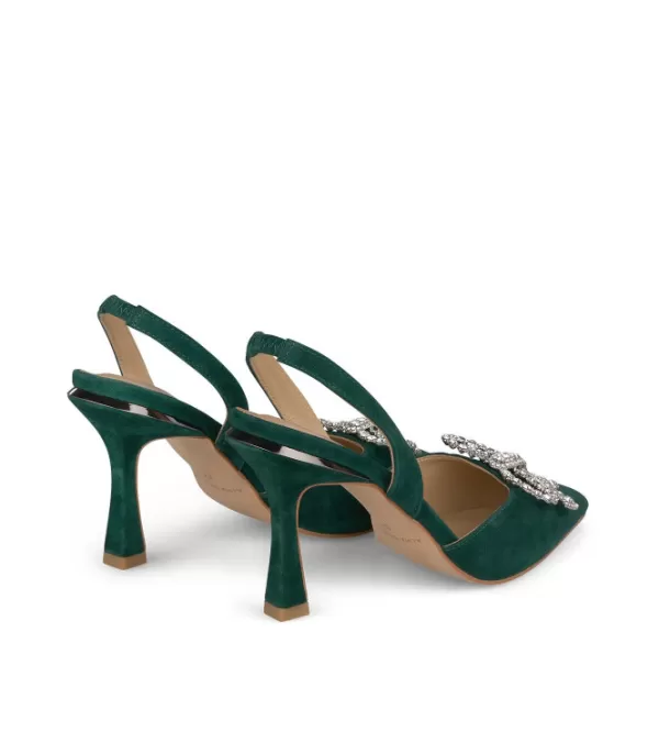 Zapato De Tacón Con Lazo De Strass. Punta Puntiaguda Y Tacón De Aguja. La Altura Del Tacón Es De 8,8 Cm.