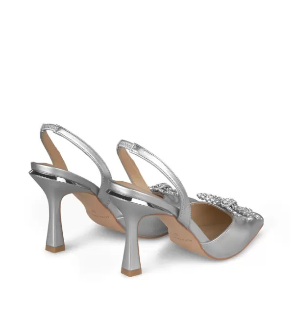 Zapato De Tacón Con Lazo De Strass. Punta Puntiaguda Y Tacón De Aguja. La Altura Del Tacón Es De 8,8 Cm.