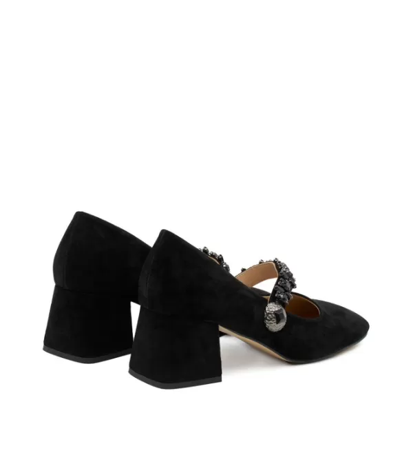 Zapatos De Tacón Realizados En Piel Con Decoración Lateral. Tacón De Bloque Y Puntera Cuadrada. La Altura Del Tacón Es De 7,5 Cm.
