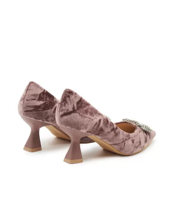 Zapatos Con Tacón Embudo Y Broche De Pedrería. Punta Puntiaguda. La Altura Del Tacón Es De 6 Cm.