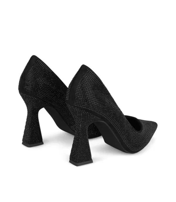 Zapato De Tacón Con Punta En Punta Recubierta De Pedrería Y Tacón Embudo. La Altura Del Tacón Es De 10 Cm.