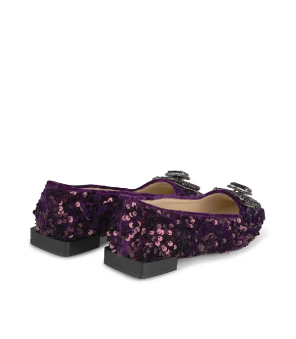 Bailarina Cubierta Con Lentejuelas Y Broche De Pedrería. Punta Cuadrada. La Altura Del Tacón Es De 2,3 Cm.