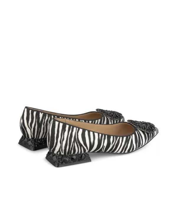 Bailarina Realizada En Piel Con Adorno Circular En La Puntera. Tacón Con Pedrería. La Altura Del Tacón Es De 2,3 Cm.