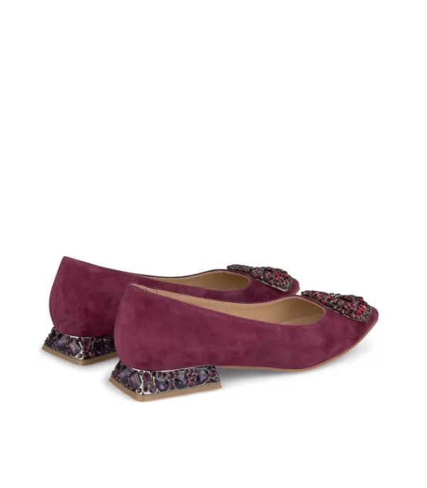 Bailarina Realizada En Piel Con Adorno Circular En La Puntera. Tacón Con Pedrería. La Altura Del Tacón Es De 2,3 Cm.