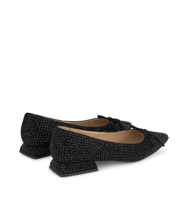 Bailarinas Para Mujer Realizadas En Piel Con Adorno De Lazo. Cubierto Con Pedrería Y Puntera En Punta.