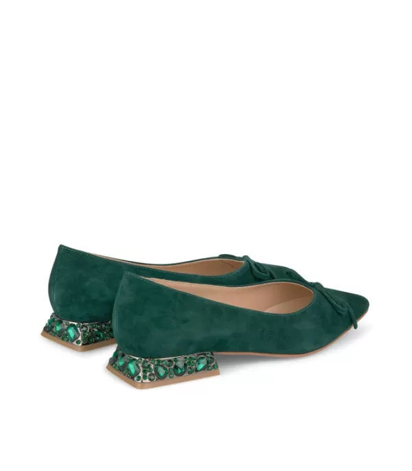 Bailarina Para Mujer Realizada En Piel Con Adorno De Lazo Y Tacón De Strass. Punta Puntiaguda. La Altura Del Tacón Es De 2,3 Cm.