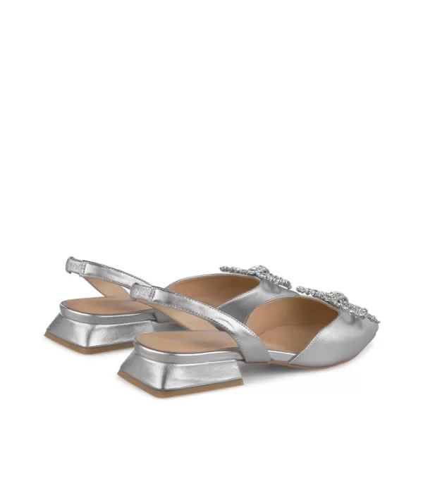 Bailarina De Salón Destalonada 100% Piel Con Detalle De Pedrería. Suela De Cuero Acolchada. La Altura Del Tacón Es De 2,4Cm.