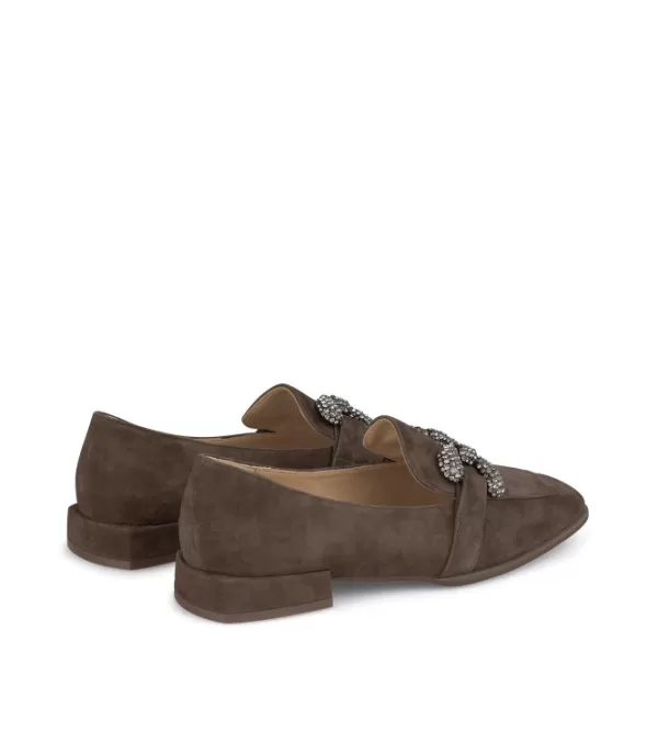 Zapato Plano Realizado En Piel Con Adorno De Estribo Cubierto De Pedrería. La Altura Del Tacón Es De 2,3 Cm.