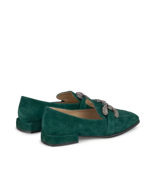 Zapato Plano Realizado En Piel Con Adorno De Estribo Cubierto De Pedrería. La Altura Del Tacón Es De 2,3 Cm.