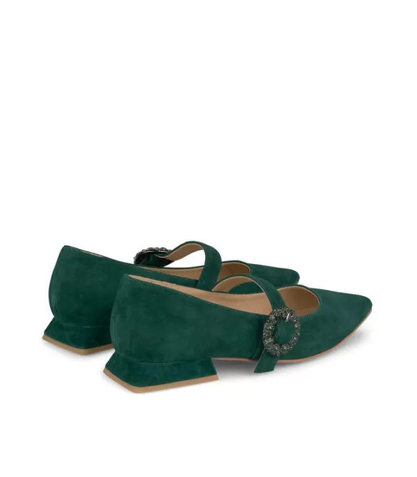 Zapato Plano Realizado En Piel Con Cierre De Hebilla. Hebilla Con Pedrería. La Altura Del Tacón Es De 2,4Cm.