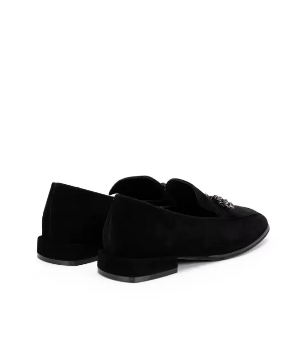 Zapato Plano Confeccionado En Piel Con Adorno De Estribo De Diamantes De Imitación.