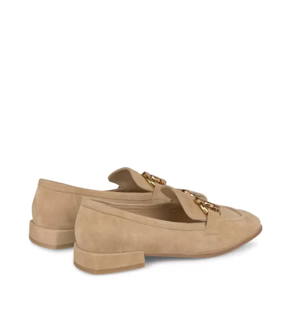 Zapato Plano Realizado En Piel Con Adorno De Estribo Metálico. La Altura Del Tacón Es De 2,3 Cm.